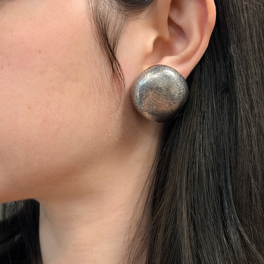 Estate Sterling Silver Brushed Pebble Clip-On Earrings by John Iversen