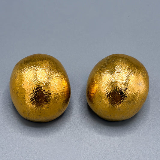 Estate Sterling Vermeil Brushed Pebble Clip- On Earrings by John Iversen