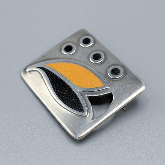 Estate Sterling Silver and Enamel Modernist Brooch by Erik Magnussen