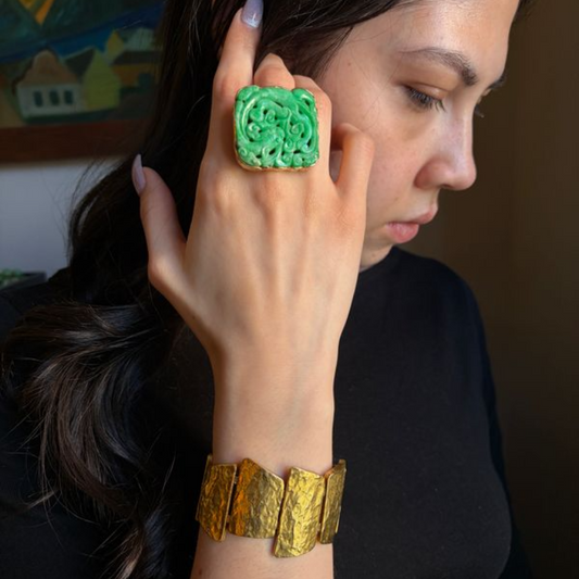 Estate Ed Weiner 18kt Gold Custom Jadeite Statement Ring