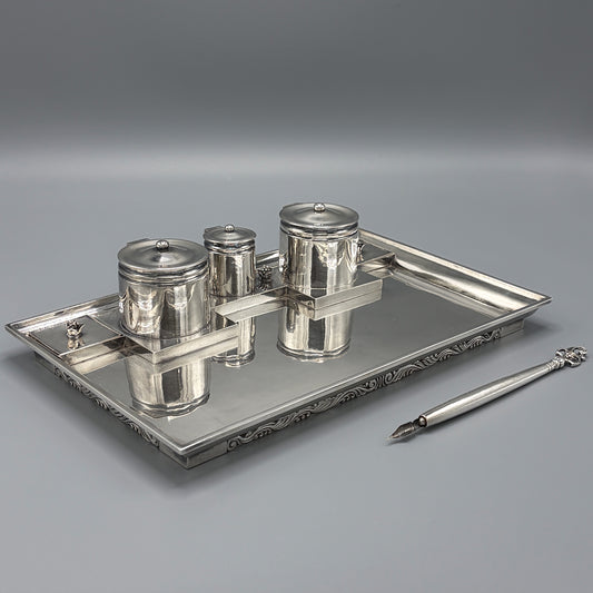 Estate Georg Jensen Sterling Silver Double Inkwell on Tray by Johan Rhode
