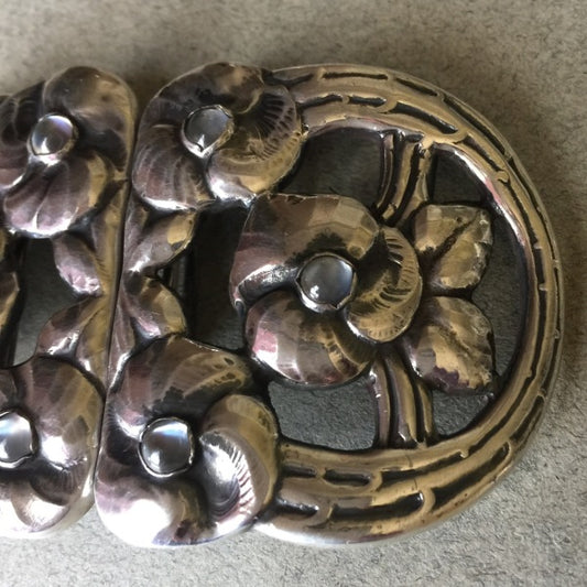 Estate Evald Nielsen 830 Silver Rare Belt Buckle with Moonstones