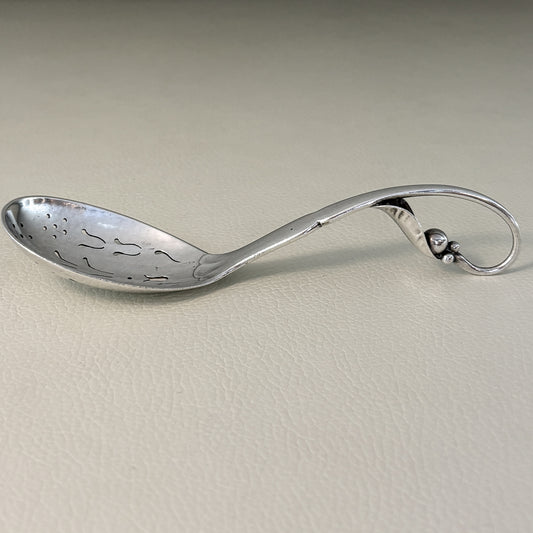 Estate Georg Jensen 830 Silver Pierced Ornamental "Leaf & Berry" Sugar Spoon No. 26