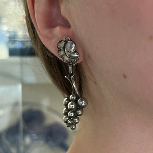Estate Georg Jensen Grape Sterling Silver Dangle Pierced Earrings by Harald Nielsen No. 40