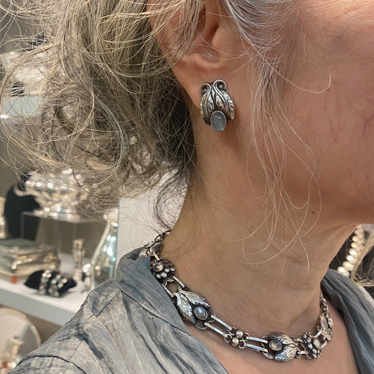 Estate Georg Jensen Sterling Silver Choker Necklace with Moonstone No 1
