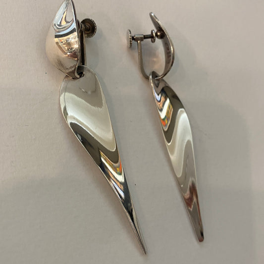 Estate Georg Jensen Sterling Silver Bold Modern Dangle Clip-On Earrings by Nanna Ditzel, Design No. 128A