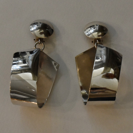Estate Georg Jensen Sterling Silver Bold Dangle Ribbon Earrings by Nanna Ditzel, Design No. 206
