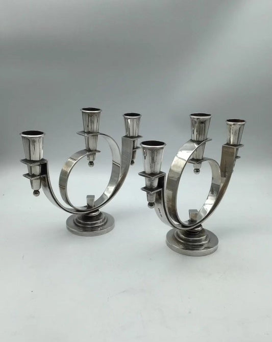 Georg Jensen Sterling Silver Art Deco Candelabra No. 670 by Oscar Gundlach-Pedersen (2)