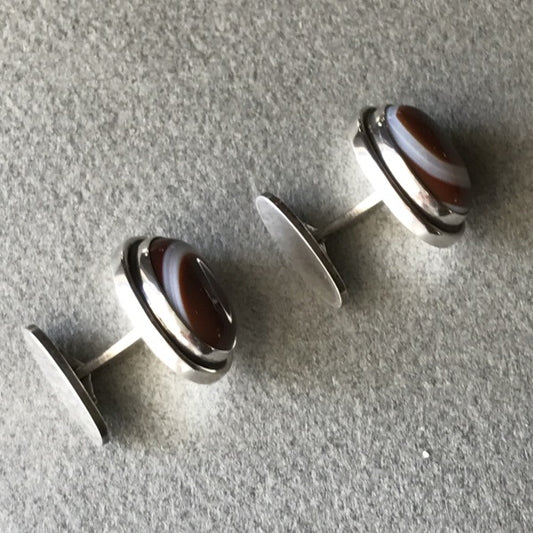 Georg Jensen Sterling Silver and Variegated Agate Cufflinks, No. 44A
