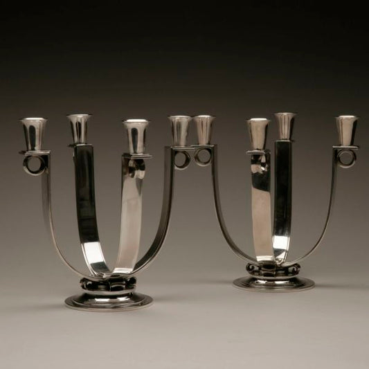 Georg Jensen Sterling Silver Art Deco Candelabra No. 623B by Oscar Gundlach-Pedersen