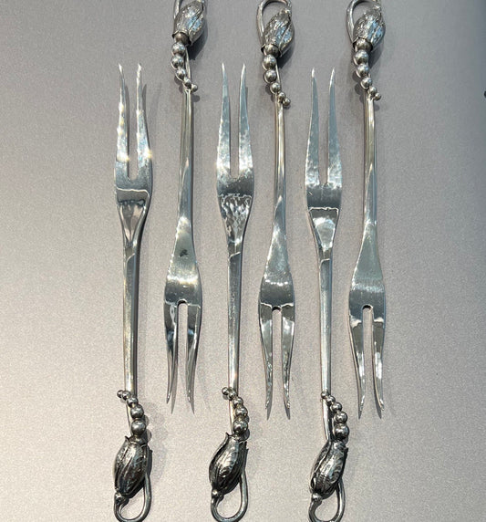 Georg Jensen Sterling Silver Blossom Cold Meat Forks Design No. 84. ( 6 )