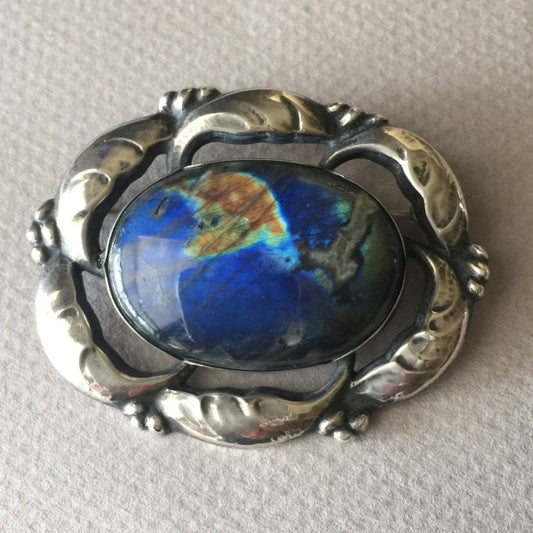 Georg Jensen Sterling Silver Brooch No. 130 with Labradorite
