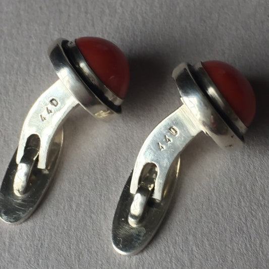 Georg Jensen Sterling Silver Cufflinks with Coral Cabochon No. 44D by Harald Nielsen