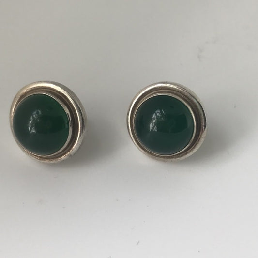 Georg Jensen Sterling Silver Earrings No.44D With Green Agate