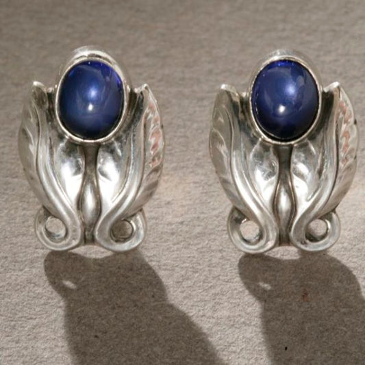 Georg Jensen Sterling Silver Earrings No. 39B with Lapis Lazuli