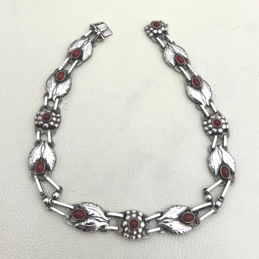 Georg Jensen Sterling Silver Necklace Design No. 1 with Carnelian Cabochon Stones