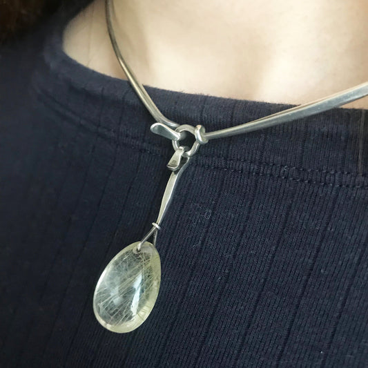 Georg Jensen Sterling Silver Neck Ring No. 173 With Rutilated Quartz Drop No. 128 By Vivianna Torun