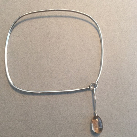 Georg Jensen Sterling Silver Neck Ring with Rutilated Quartz Pendant