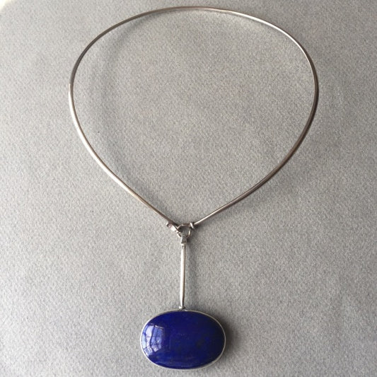 Georg Jensen Sterling Silver Neck Ring No. 174 With Lapis Lazuli Drop No. 133 by Vivianna Torun