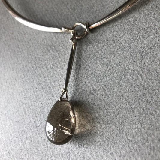 Georg Jensen Sterling Silver Neck Ring No. 173 With Rutilated Quartz Drop No. 173 By Vivianna Torun