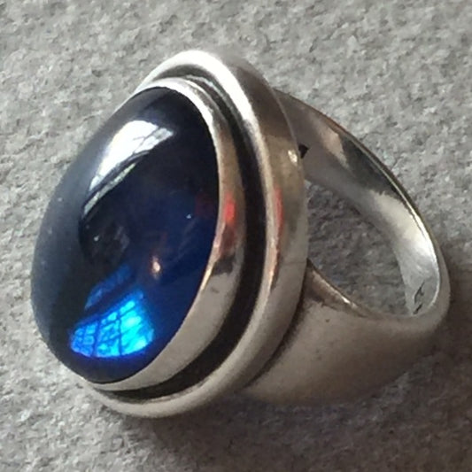 Georg Jensen Sterling Silver Synthetic Sapphire Ring No. 46A by Harald Nielsen, No 91 Ring by Nanna Ditzel and Earring no 86
