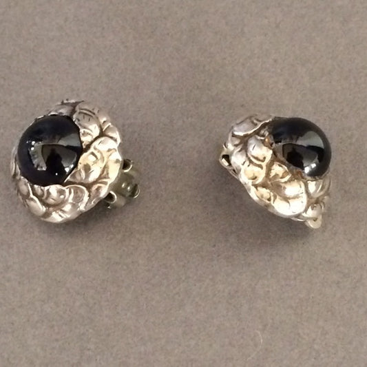 Georg Jensen Sterling Silver Synthetic Sapphire Cabochon Clip-On Earrings No. 74