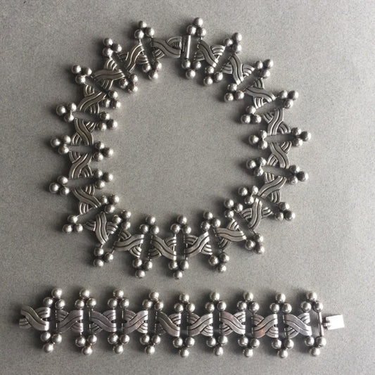 Hector Aguilar 940 Silver Six Spheres Necklace and Bracelet Ensemble