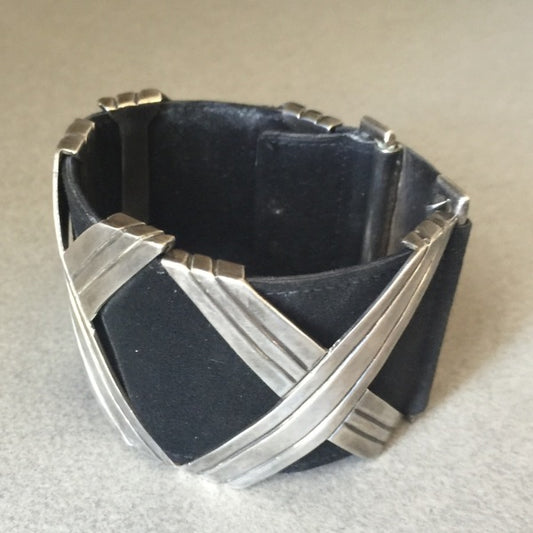 Hector Aguilar 940 Silver and Leather "Georgia O'Keefe" Bracelet