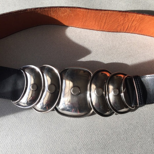 Hector Aguilar 940 Silver "Armadillo" Belt Buckle with Custom Leather Belt by Hermes