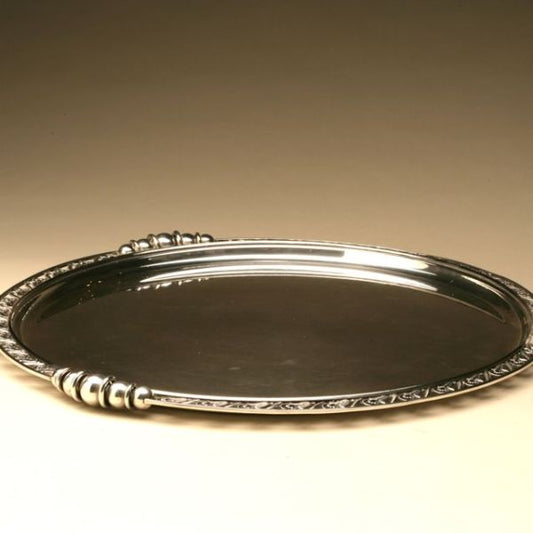La Paglia Large Round Sterling Silver Tray with "Lily of the Valley" Motif