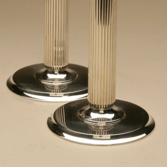 Pair of Georg Jensen Sterling Silver Candlesticks by Sigvard Bernadotte Design No. 855B
