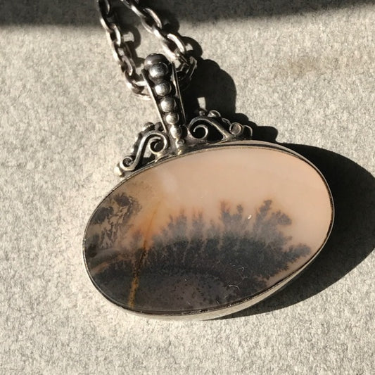 Royal Copenhagen Sterling Silver and Landscape Agate Necklace