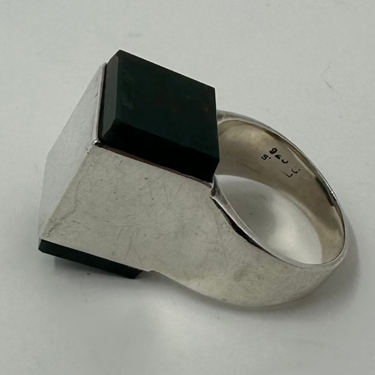 Sterling Silver Geometric Modernist Ring with Bloodstone Cabochons by S' Paliu size 7
