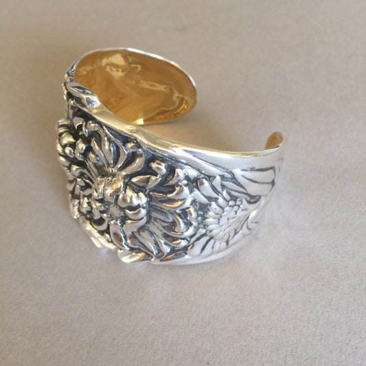 Sterling Silver "Repousse" Sunflower Cuff Bracelet By Galmer