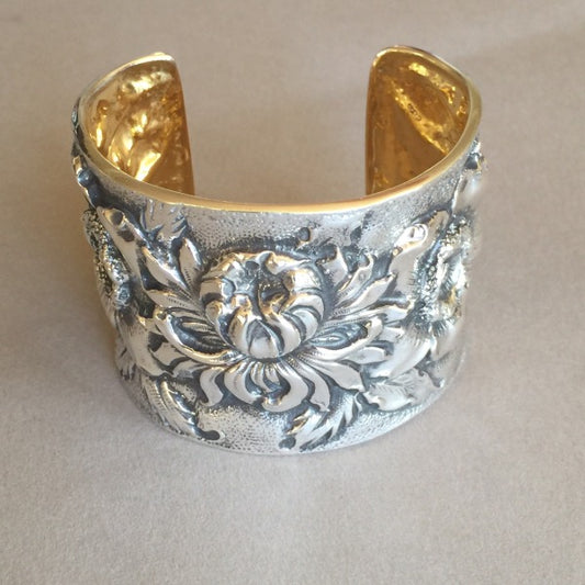 Sterling Silver "Repousse" Chrysanthemum Cuff Bracelet By Galmer