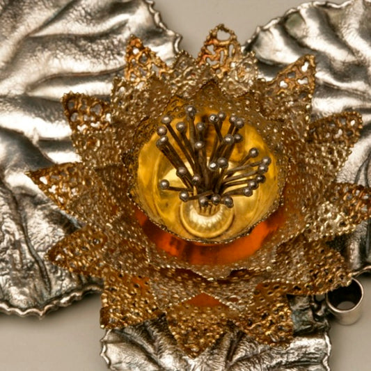 Stuart Devlin Sterling Silver and 24KT Gold Vermeil "Lily Pad" Candle Holder