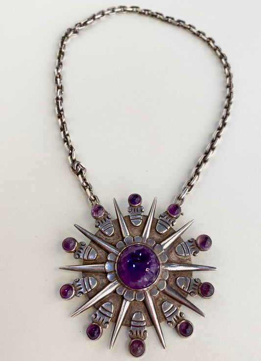 William Spratling Silver Amethyst Pendant with Silver Chain