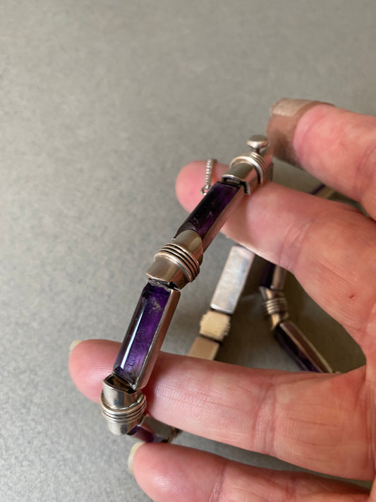 Antonio Pineda Sterling Silver and Amethyst Bracelet ( pair)