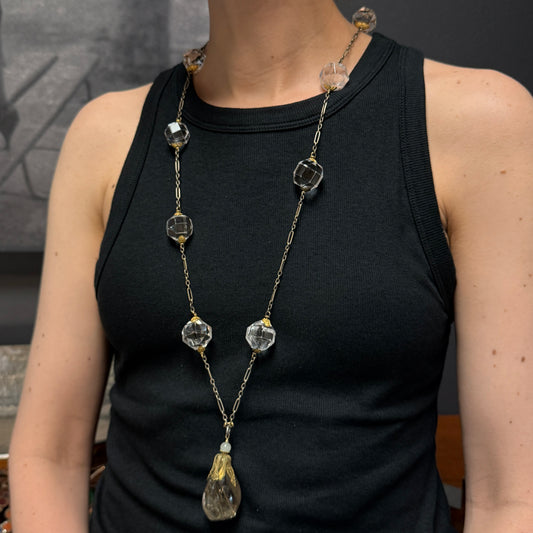 Antique Victorian Rutilated Quartz Drop and Faceted Rock Crystal Necklace