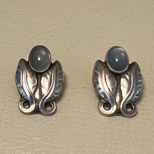 Estate Georg Jensen Sterling Silver Clip-On Earrings with Moonstone No. 108