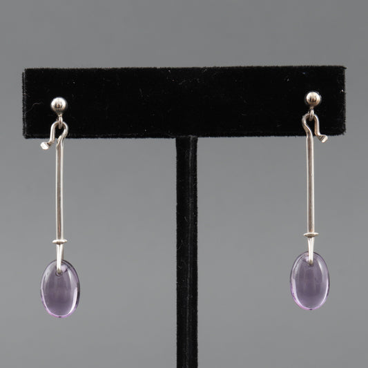 Estate Georg Jensen Sterling Silver Dew Drop Earrings with Amethyst by Vivianna Torun, Design No. 128A