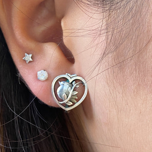 Estate Georg Jensen Sterling Silver Earrings Bird and Heart with Pin (3), Design No. 10