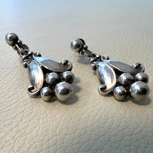 Estate Georg Jensen Sterling Silver Dangle Leaf & Berry Screw Back Earrings No. 32A