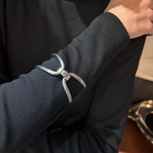 Estate Georg Jensen Sterling Silver Wide Modernist Bracelet by Minas Spiridis No. 399