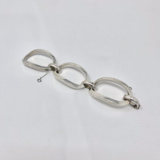 Estate Italian Sterling Silver Extra Large Three-oval Link Bracelet