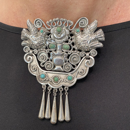 Estate Matl Silver And Turquoise Brooch