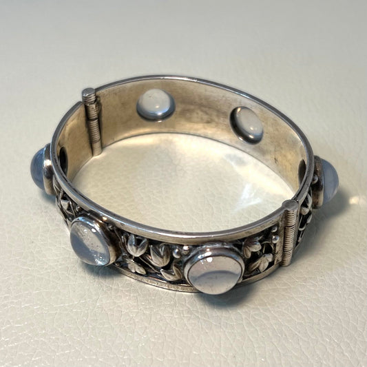 Estate Jo Michels Sterling Silver and Moonstone Bangle
