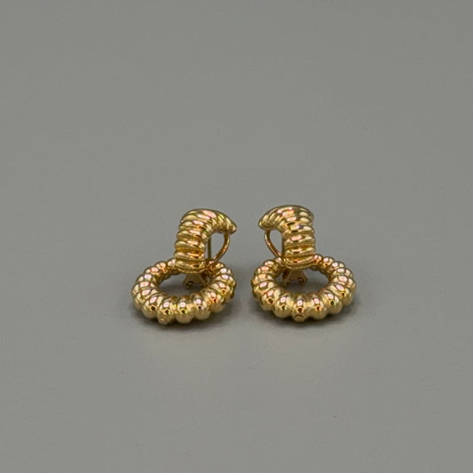 Estate John Hardy 18KT Gold Ribbed Door Knocker Earrings with Removable Ring
