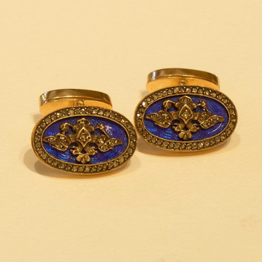 Estate Russian 14K Rose Gold and Enamel Guilloché Cufflinks in the Style of Fabergé