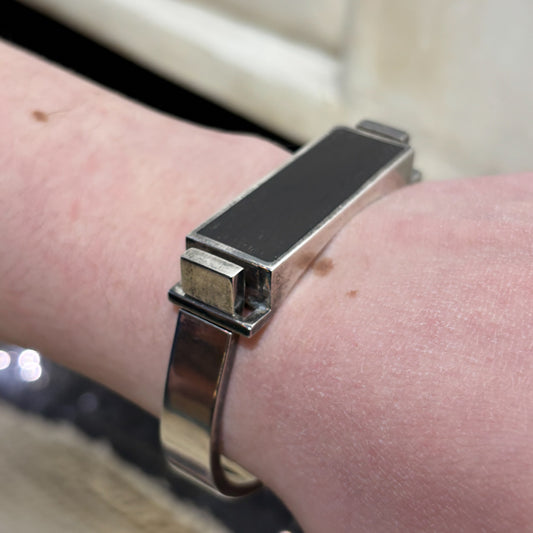 Estate Puig Doria Sterling Silver Modernist Open Cuff Bangle with Ebony Inlay